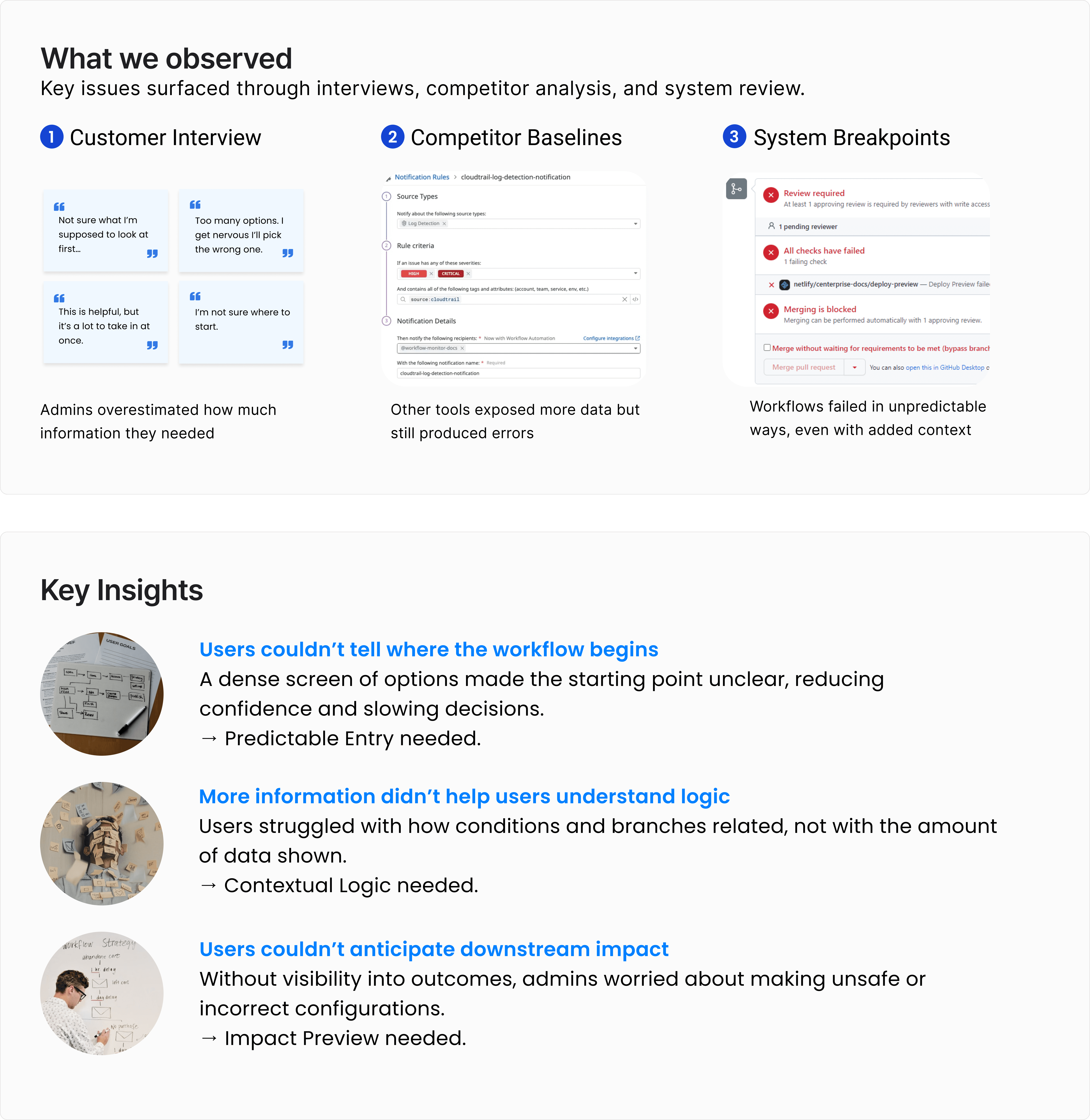 The platform offered powerful automation, but overly flexible workflows and complex system logic led to frequent configuration errors and high operational overhead. Admins struggled to predict the downstream impact of their actions, making critical workflows feel risky to deploy.